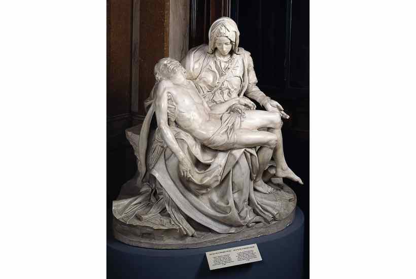 The room is immersed in semi-darkness. Light filters down from above, glistening on polished marble as if it were flesh.…